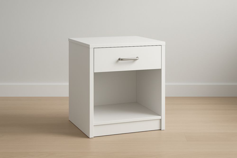 Table de Chevet Cube Blanc avec Tiroir en Bois Panélisé