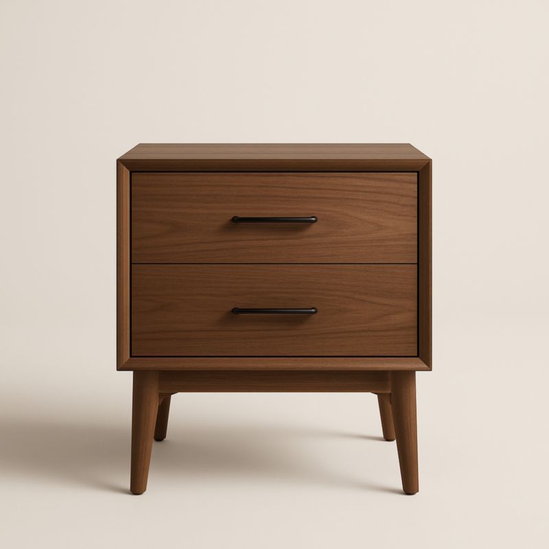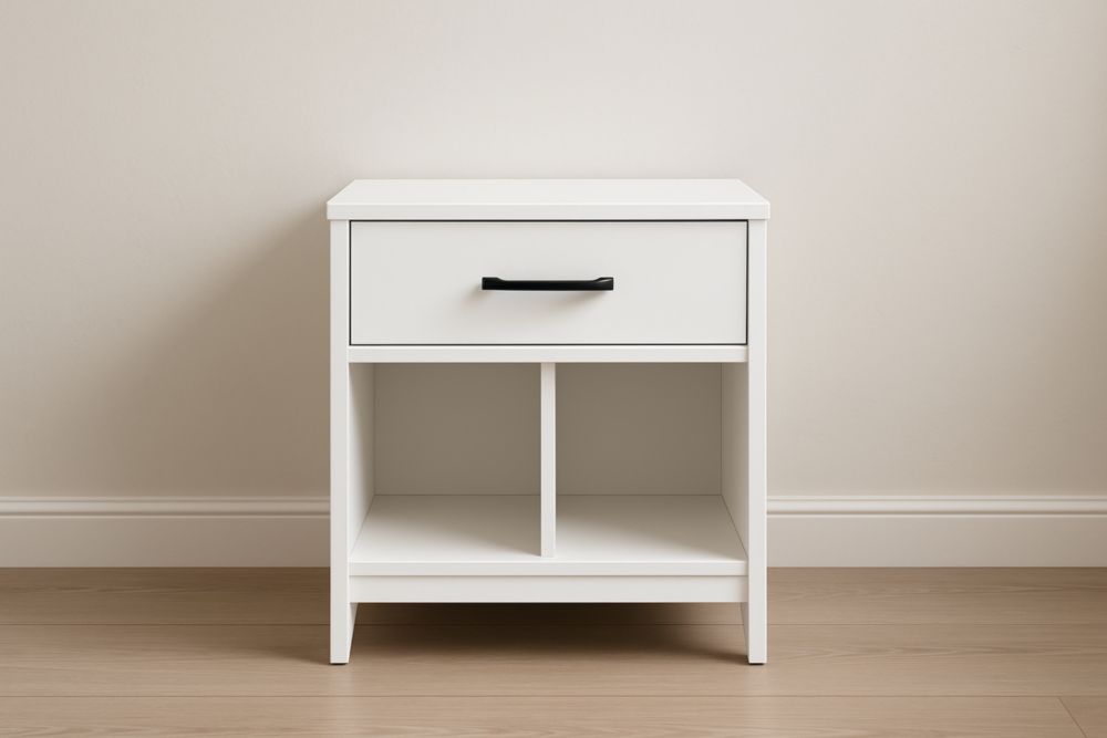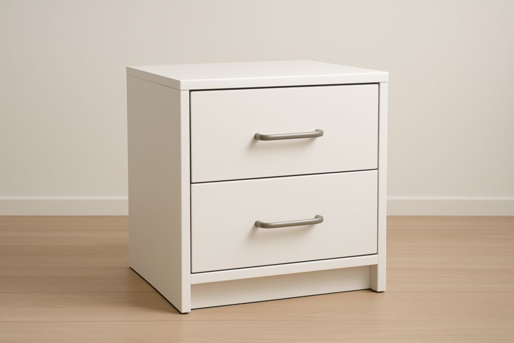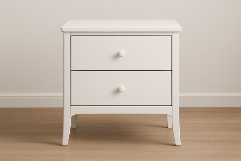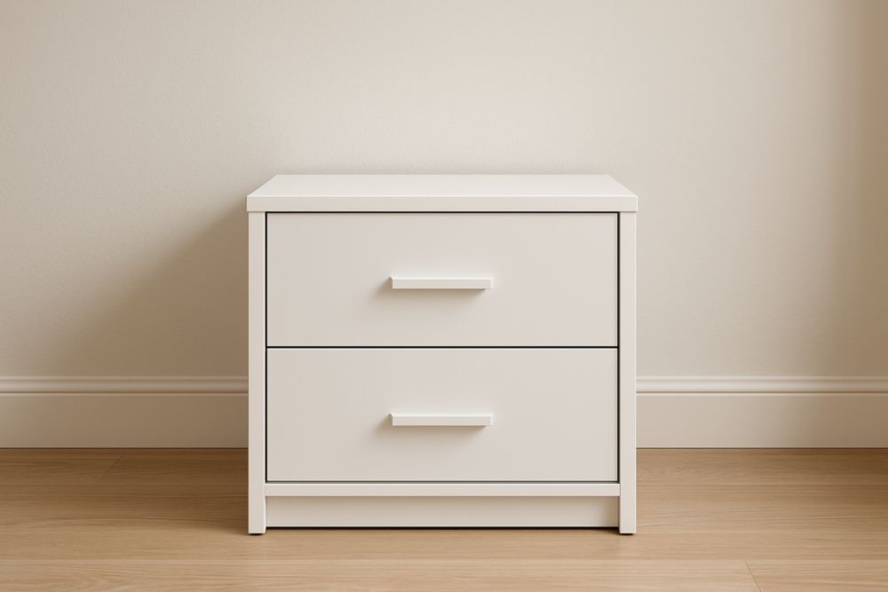 Table de Chevet en Bois Blanc avec 2 Tiroirs